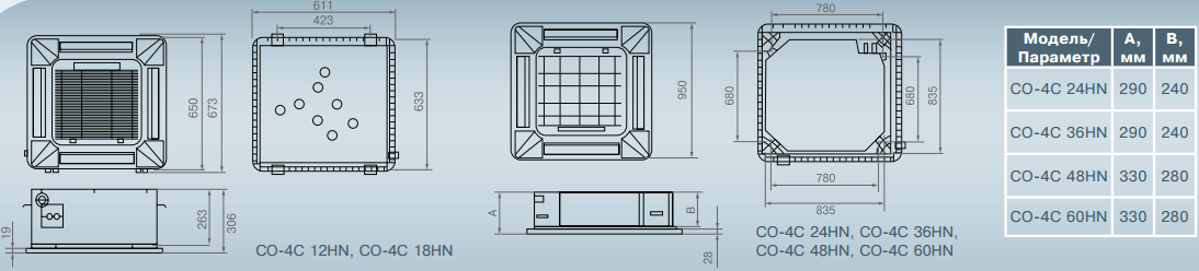 Royal Clima CO-4C 12HN — кассетная сплит-система полупромышленного типа, созданная с использованием самых современных японских технологий. Это оборудование отлично подходит для использования в нашей стране, благодаря наличию зимнего комплекта. Кроме того, эта серия обладает привлекательным дизайном и наличием нескольких функций, существенно облегчающих эксплуатацию.