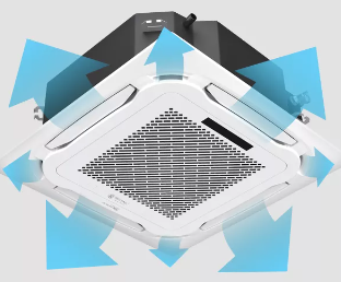 360 °С AIR FLOW. Круговой поток воздуха. Положения жалюзи автоматический регулируются во всех направлениях, что предоставляет возможность эффективного и равномерного распределение воздуха во всем помещении.
